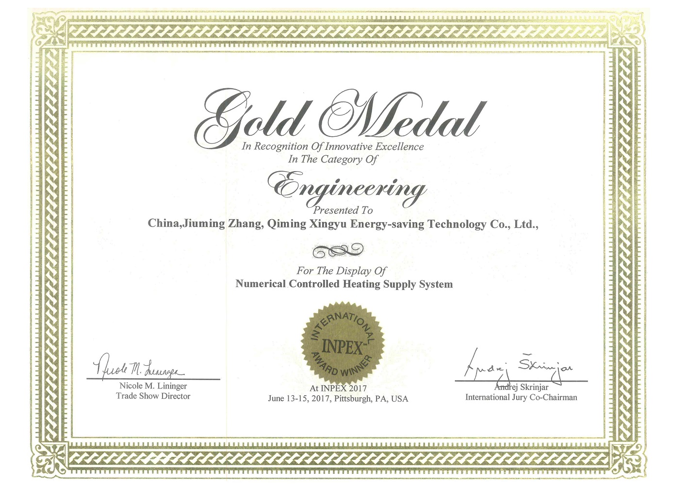 數控供熱杰出發明金獎
