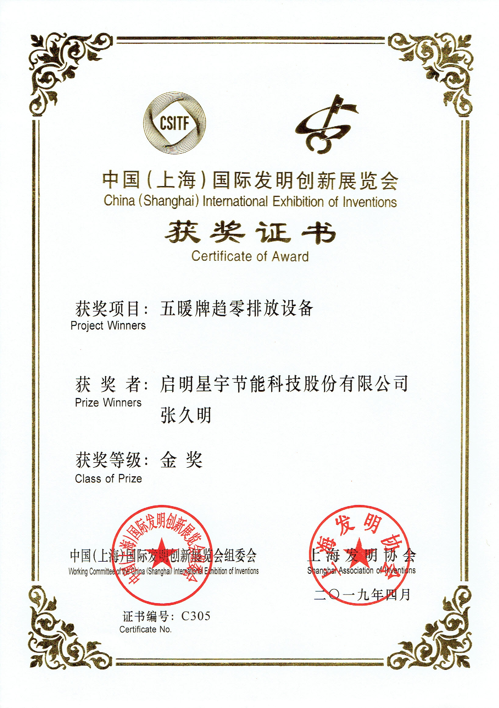 五暖趨零排放設(shè)備金獎(上海)