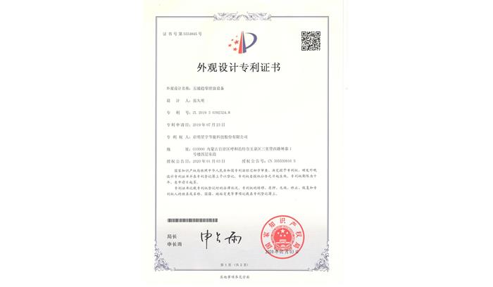五暖趨零排放設(shè)備外觀設(shè)計專利證書