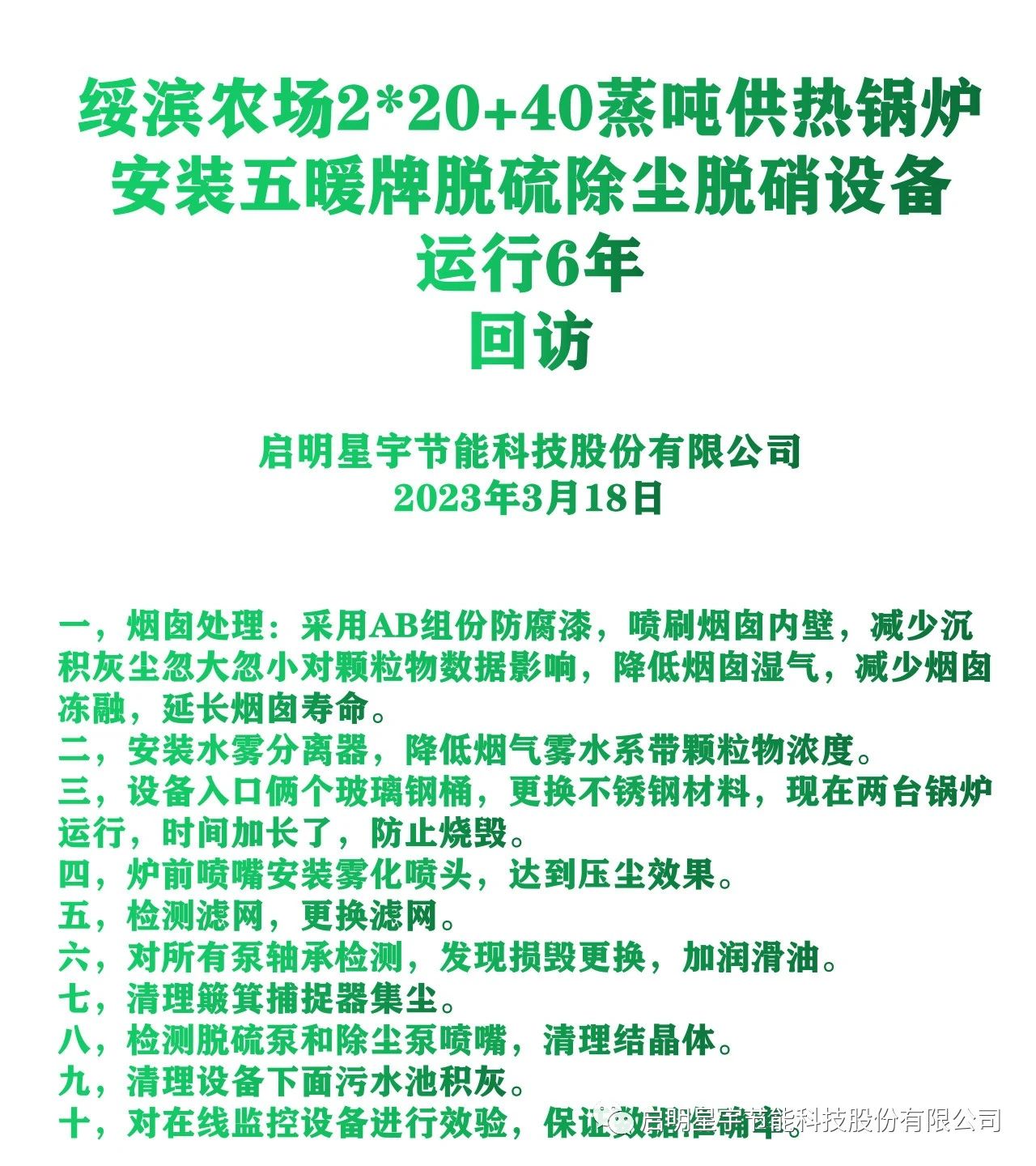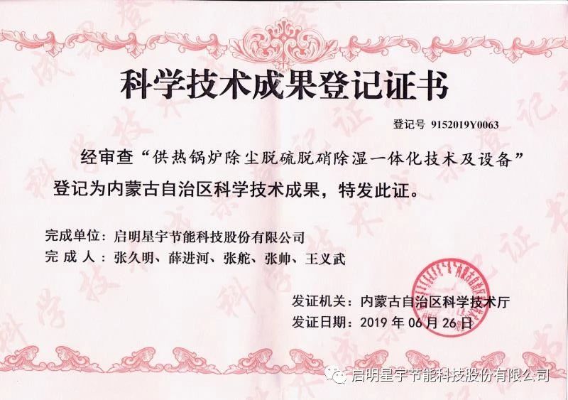 啟明星宇節(jié)能科技股份有限公司于2018年在綏濱農(nóng)場,安裝3臺五暖牌脫硫除塵脫硝設備,安全運行6個采暖期,這套設備除塵不用更換布袋,脫硫不用脫硫塔,脫硝不用催化劑。