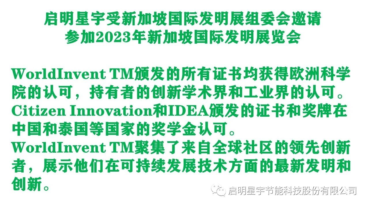 熱烈祝賀:啟明星宇節能科技股份有限公司,參加48屆日內瓦國際發明博覽會,慶祝iIFIA國際發明聯合會成立55周年!